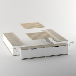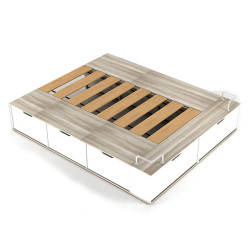 La estructura posibilita el uso de colchones de 1.40x1.90m utilizando los accesorios incluidos y 1.60x2.00m