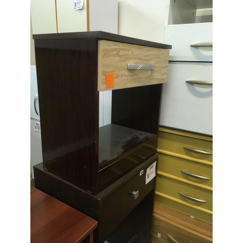 Mesa de Luz con 1 Cajón modelo Ecopack. Fabricante: Ricchezze. Consultar stock de colores: Tabaco/Maple, Roble, Caoba, Mogno.
