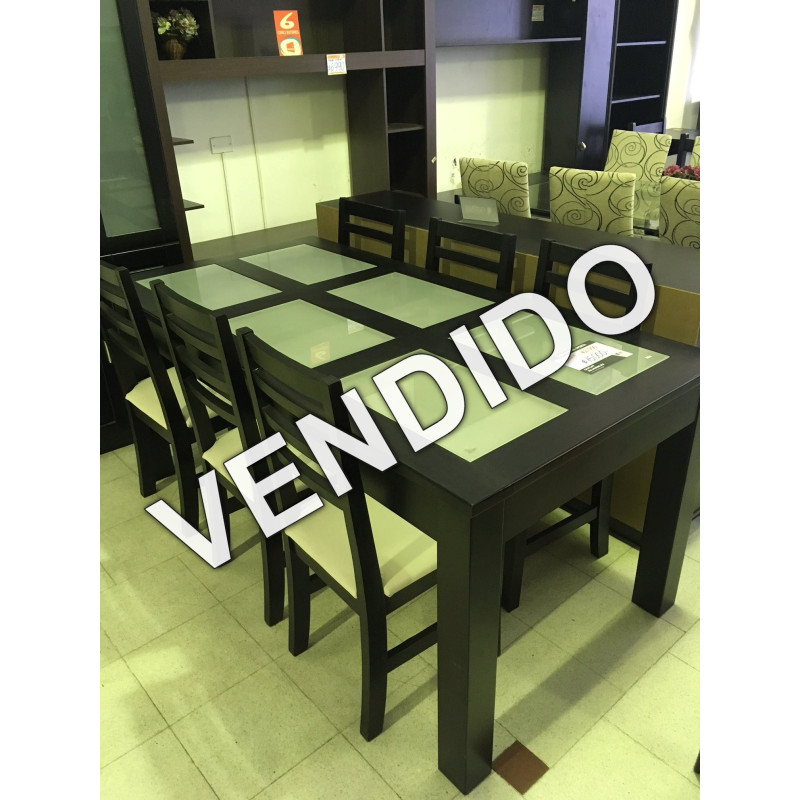 Juego de comedor compuesto por: Mesa Montecatini 1.80 c/ vidrios esmerilados + 6 sillas Niza asiento tapizado. Fabricante: Color Living