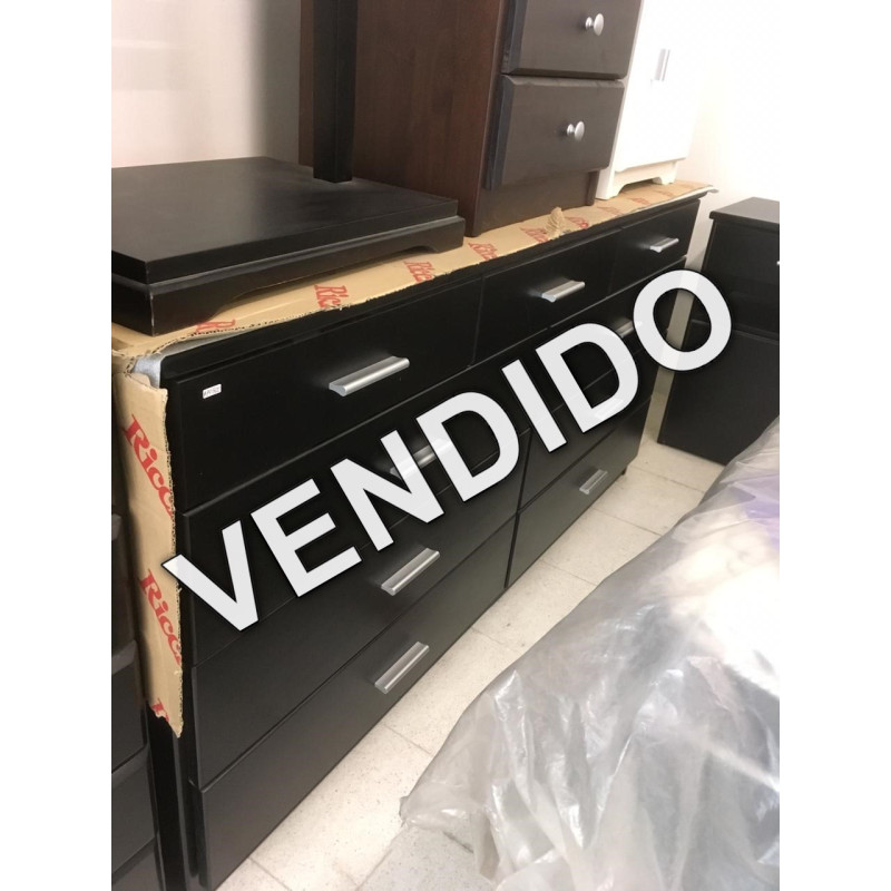 Cómoda de madera maciza lustrada, con 9 cajones con correderas metálicas y tiradores de aluminio anodizado. Modelo: Montecatini. Fabricante: Dadone HDH