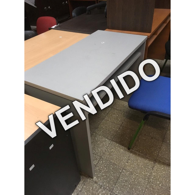 Escritorio con estante fijo, de 1.00x0.45m. Fabrido en melamina de 25mm color gris. Fabricante: Reproex (Producto discontinuado, en liquidación con detalles).
