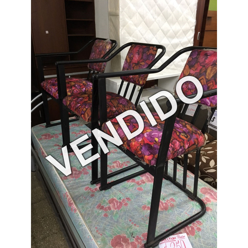 Juego de 6 sillas de caño color negro, con asiento y respaldo tapizado en tela. (Producto de saldo, con detalles).