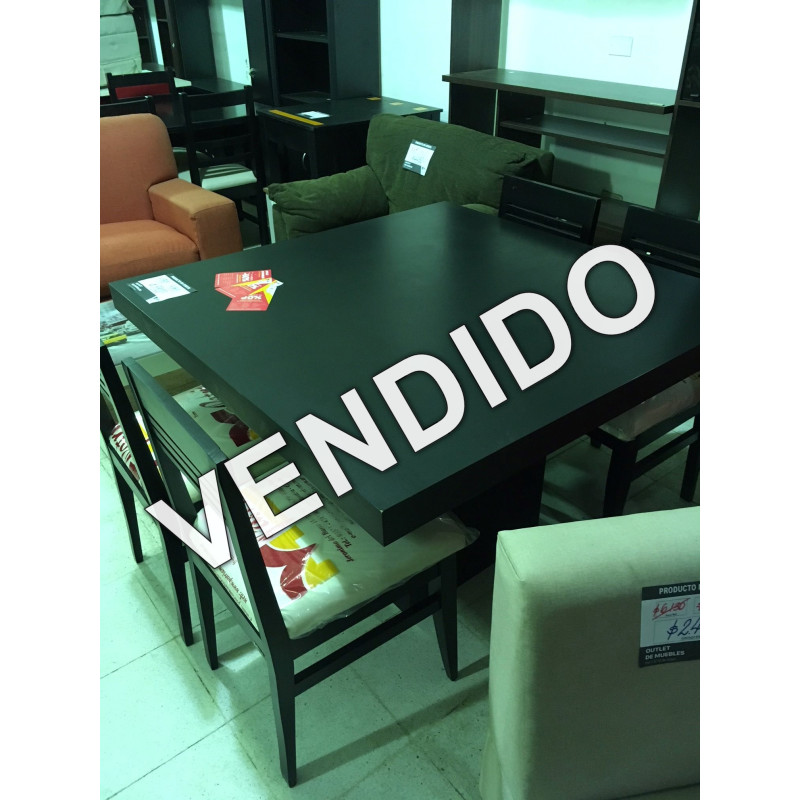 Mesa cuadrada de guatambú lustrado color wengue, con base central y tapa de 1.30x1.30m.
