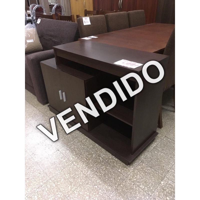 Mesa de TV con ruedas, dos puertas y estante. Color: Wengue. Modelo: 1031. Fabricante: Table's
