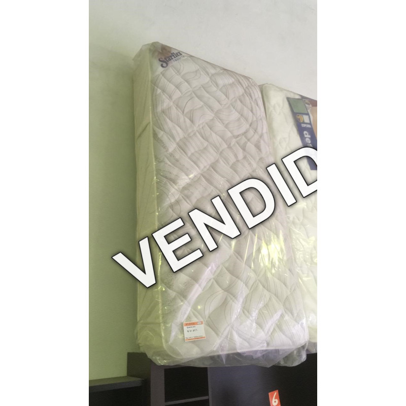 Colchón de resortes de plaza y media (0.90x1.90m). De resortes con doble marco de acero perimetral. Tapizado en tela Jackard. Fabricante: Starflex. (Producto en liquidación con detalles).