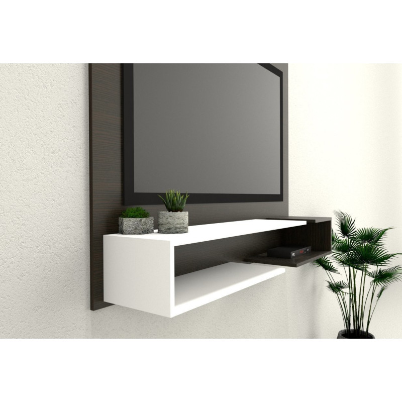 Panel flotante para TV con 2 estantes.