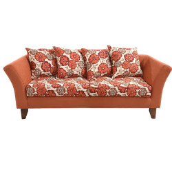 Este sillón posee una estructura reforzada de madera maciza, relleno de poliéster de alta densidad. Los asientos poseen cinchas elásticas y almohadones con placa soft y guata. Los almohadones de vestir estan rellenos con vellon siliconado y guata. Todos poseen fundas con cierres. Las patas son de guatambú macizo lustrado.