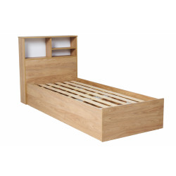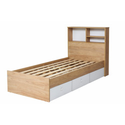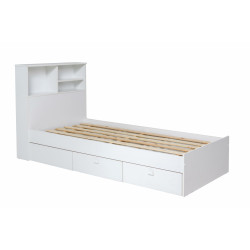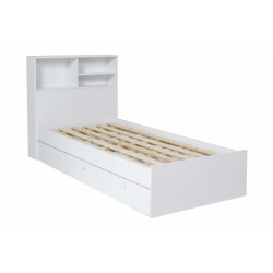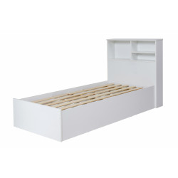 La Cama Ecopack Una Plaza cuenta con Repisa y dos cajones espaciosos, lo que la convierte en una opción funcional y moderna para maximizar el espacio en tu habitación. Fabricada en melamina de 15 mm en color blanco, ofrece un diseño simple y resistente, fácil de combinar con cualquier estilo de decoración.